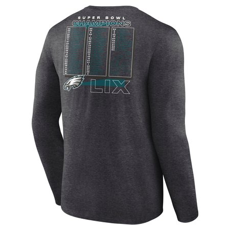 Men's Philadelphia Eagles Heather Charcoal Super Bowl LIX Champions Roster Long Sleeve T-Shirt