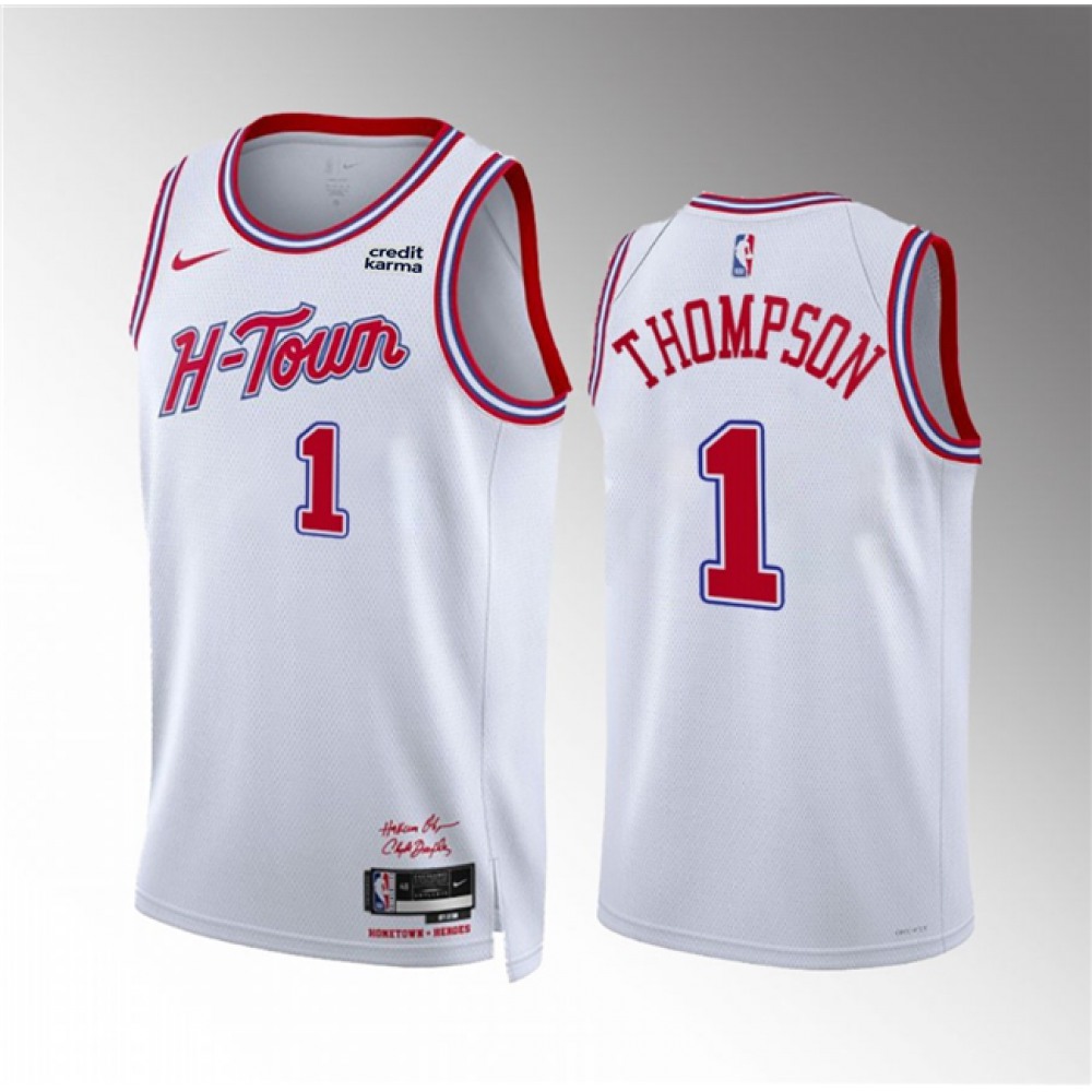 Men's Houston Rockets #1 Amen Thompson White 2023/24 City Edition Stitched Jersey