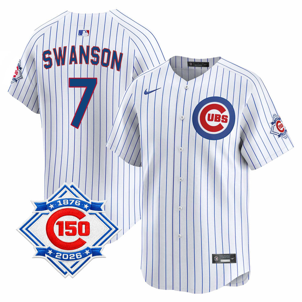 Men's Chicago Cubs #7 Dansby Swanson White Nike Home Vapor Limited 150th Anniversary Authentic Lettering Jersey