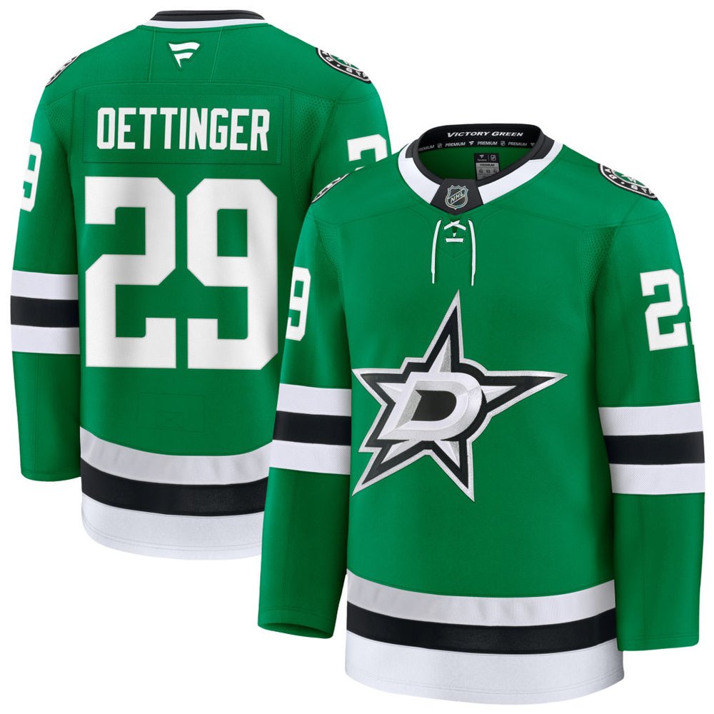 Men's Dallas Stars #29 Jake Oettinger Green 2025-26 Alternate Stitched Hockey Premium Jersey