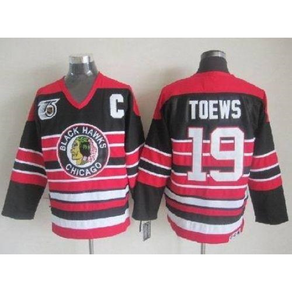Blackhawks #19 Jonathan Toews Red/Black 75TH CCM Stitched NHL Jersey