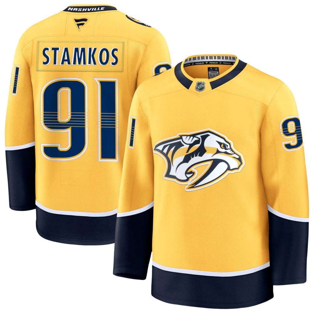 Men's Nashville Predators #91 Steven Stamkos Gold 2024-25 Home Stitched Hockey Premium Jersey