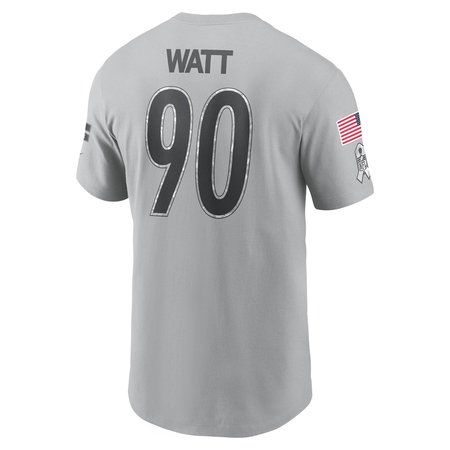 Men's Pittsburgh Steelers T.J. Watt Gray 2024 Salute To Service Name & Number T-Shirt