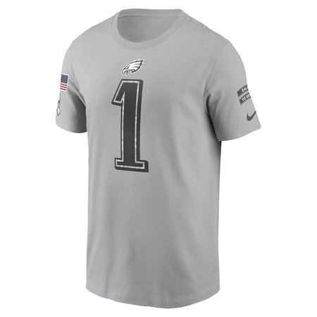 Men's Philadelphia Eagles Jalen Hurts Gray 2024 Salute To Service Name & Number T-Shirt