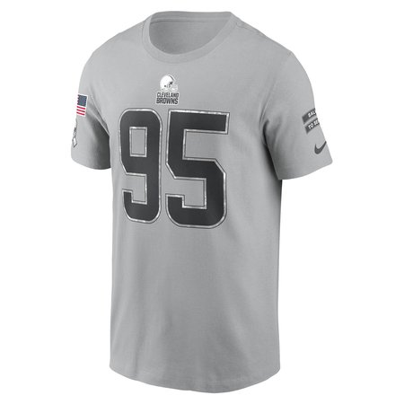 Men's Cleveland Browns Myles Garrett Gray 2024 Salute To Service Name & Number T-Shirt