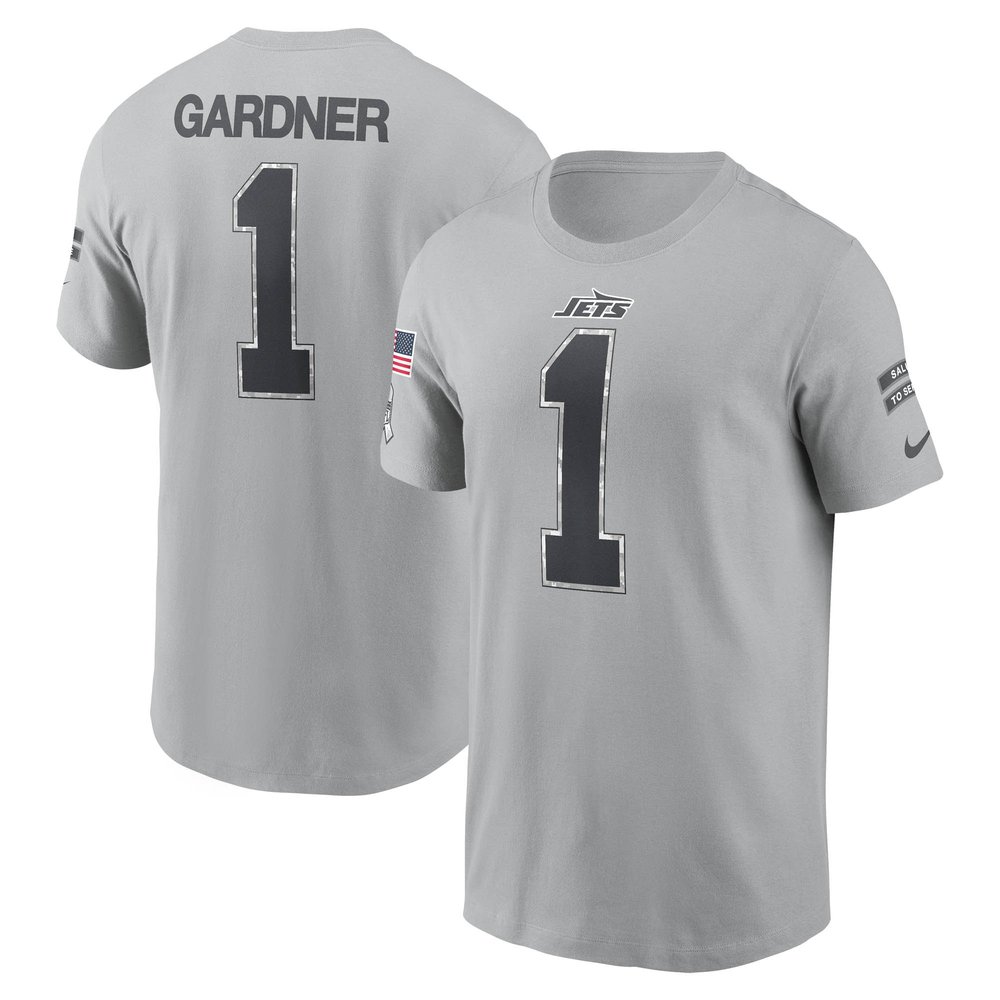 Men's New York Jets Ahmad Sauce Gardner Gray 2024 Salute To Service Name & Number T-Shirt