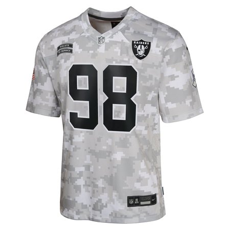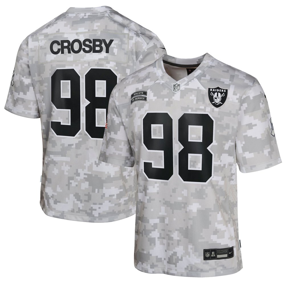 Youth Las Vegas Raiders Maxx Crosby Arctic Camo 2024 Salute to Service Game Jersey