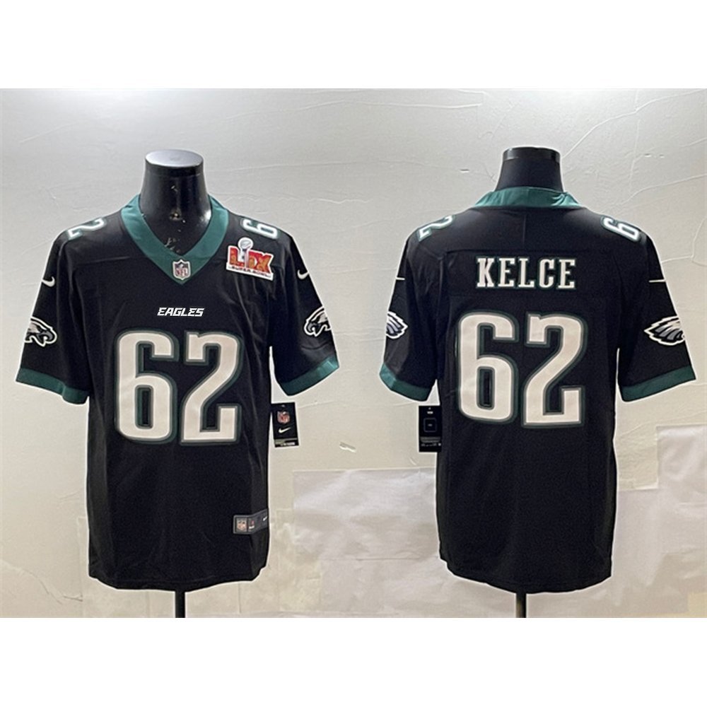 Men's Philadelphia Eagles #62 Jason Kelce Black 2025 Super Bowl LIX Patch Vapor Untouchable Limited Stitched Football Jersey