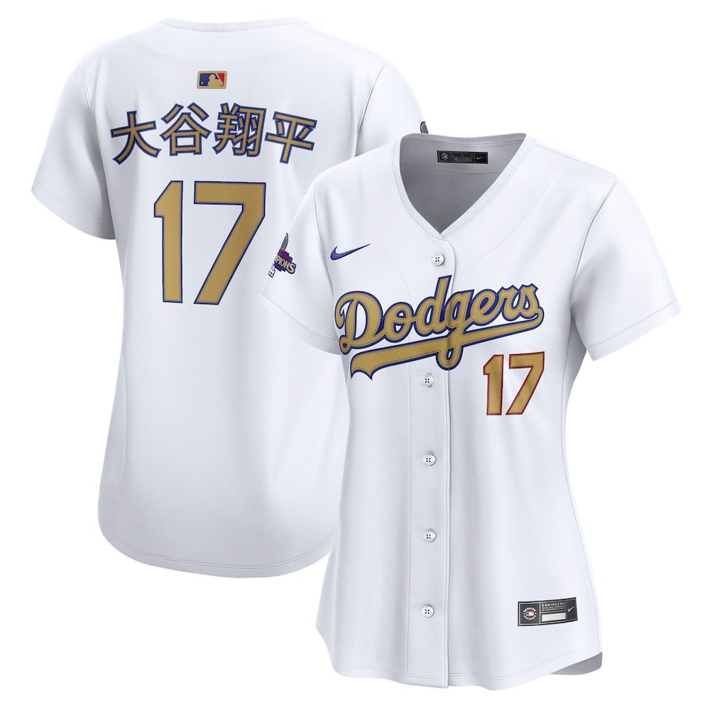 Women's Los Angeles Dodgers #18 Shohei Ohtani White 2025 Gold Collection Kanji Limited Jersey