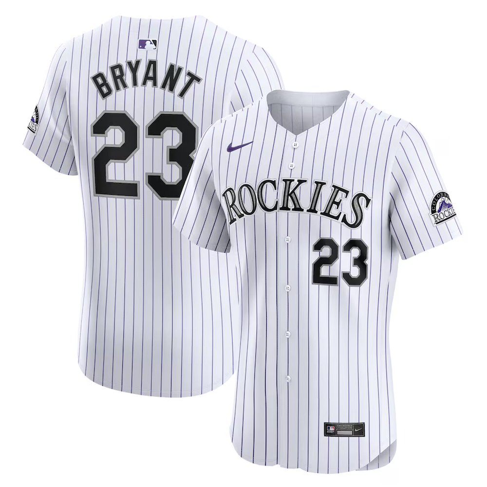Men's Colorado Rockies #23 Kris Bryant White Home Elite Jersey