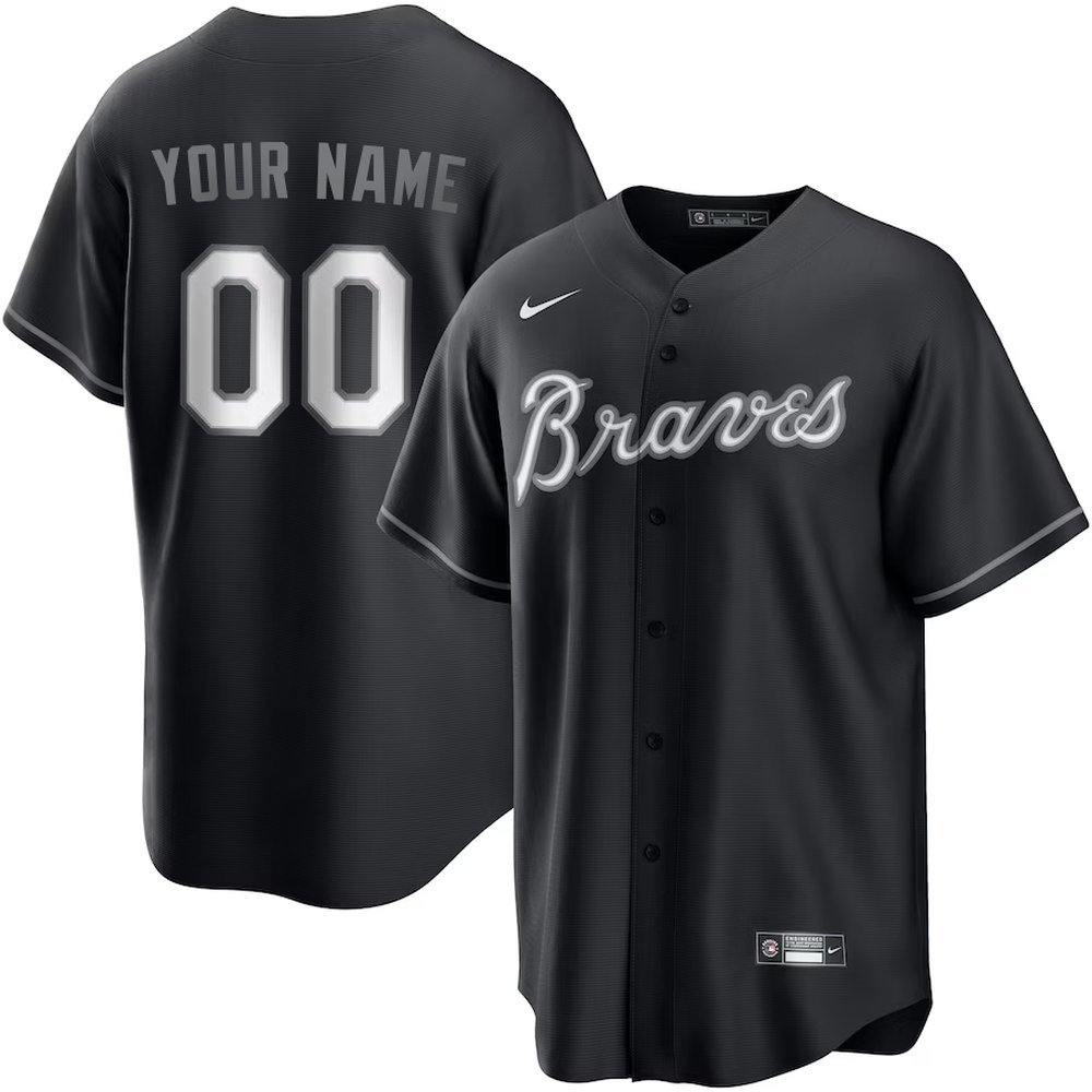 Men's Atlanta Braves Custom Black Lights Out Replica Jersey