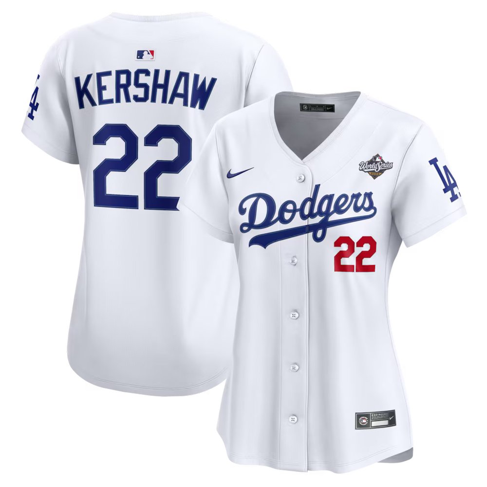 Women's Los Angeles Dodgers #22 Clayton Kershaw White 2025 World Series Home Limited Jersey
