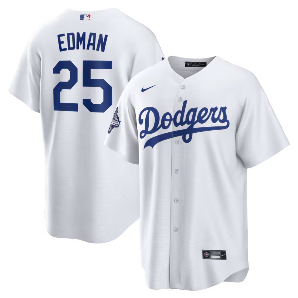 Men's Los Angeles Dodgers #25 Tommy Edman White 2025 World Series Champions Home Replica Jersey