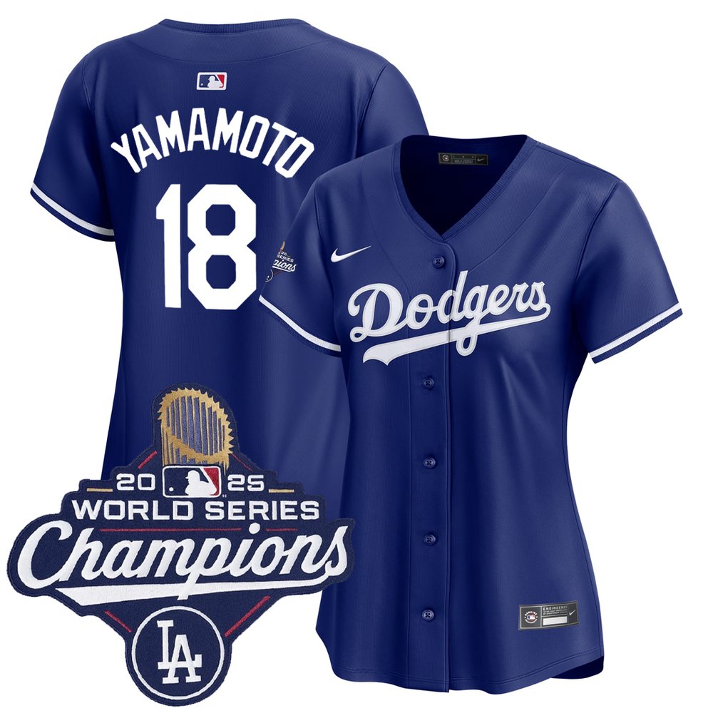 Women's Los Angeles Dodgers #18 Yoshinobu Yamamoto Royal 2025 World Series Champions Home Replica Jersey