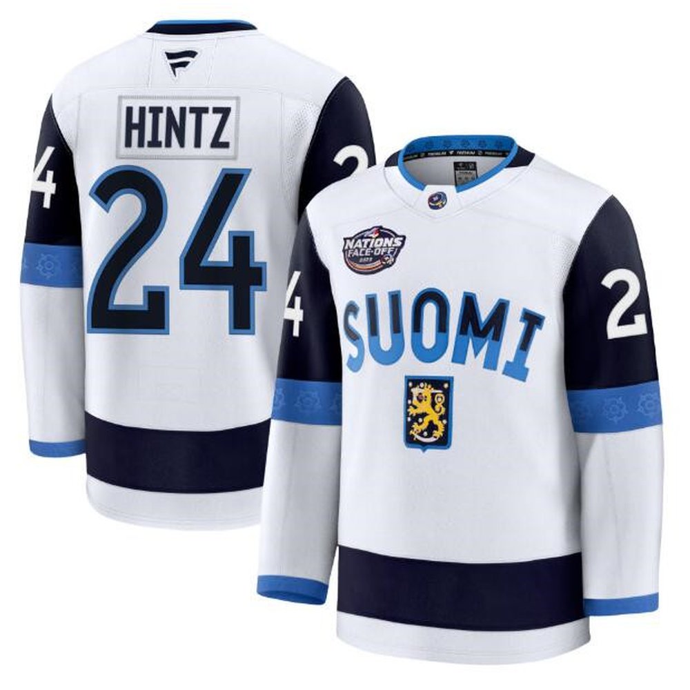 Men's Finland #24 Roope Hintz White 2025 4 Nations Face-Off Premium Stitched Jersey