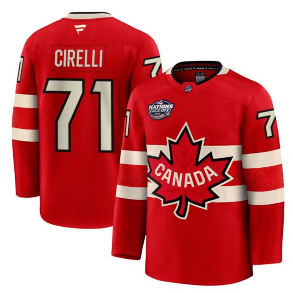 Men's Canada #71 Anthony Cirelli Red 2025 4 Nations Face-Off Premium Stitched Jersey