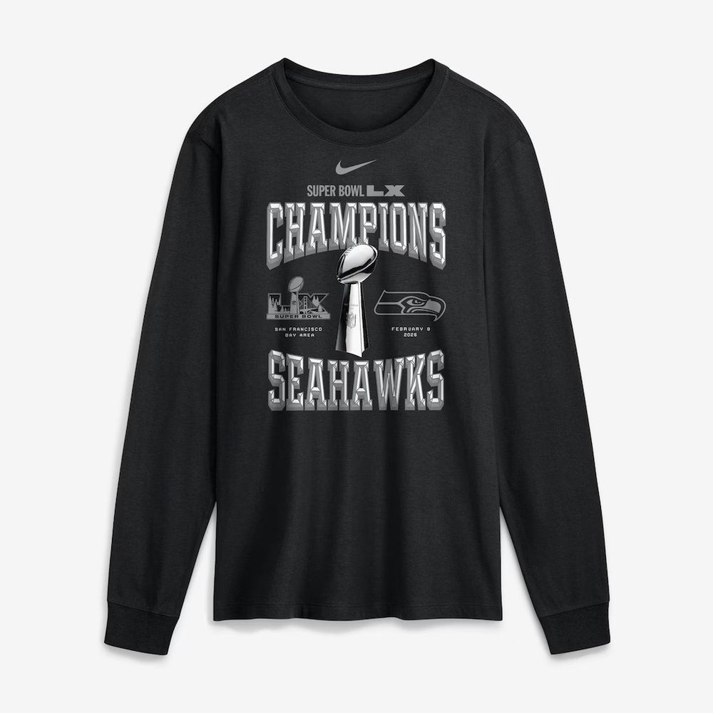 Men's Seattle Seahawks Nike Black Super Bowl LX Champions Locker Room Trophy Collection Long Sleeve T-Shirt