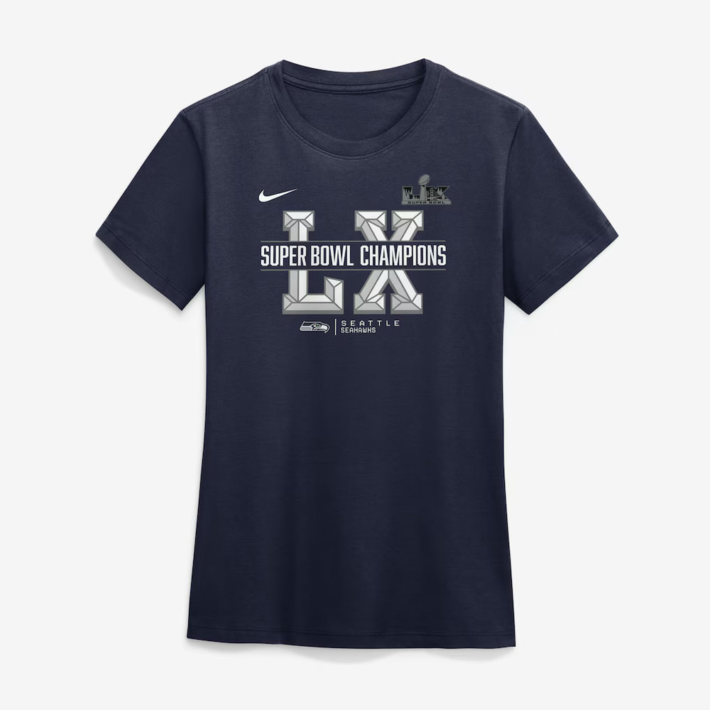 Women's Seattle Seahawks Nike College Navy Super Bowl LX Champions Sacrifice T-Shirt