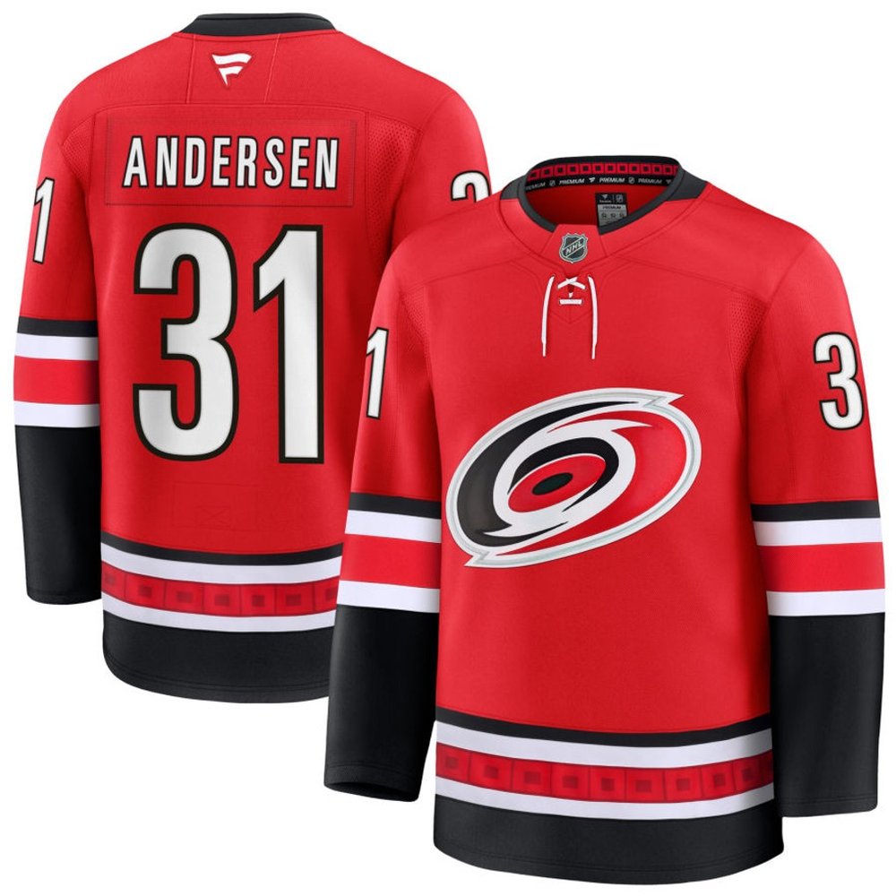 Men's Carolina Hurricanes #31 Frederik Andersen Red Home Stitched Hockey Premium Jersey