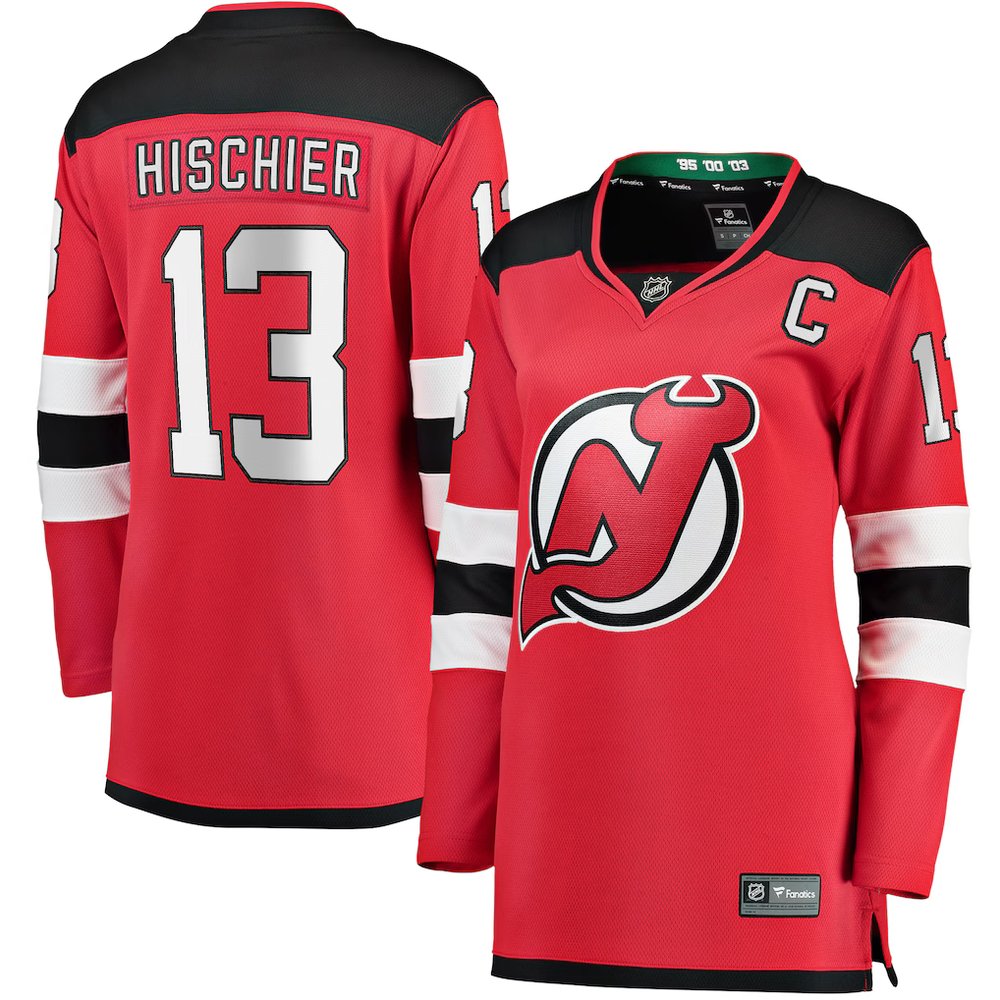Women's New Jersey Devils #13 Nico Hischier Red Captain Patch Home Jersey