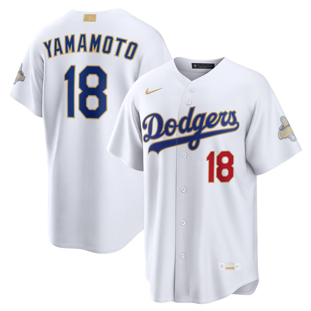 Youth Los Angeles Dodgers #18 Yoshinobu Yamamoto Nike White 2026 Gold Collection Authentic Custom Jersey