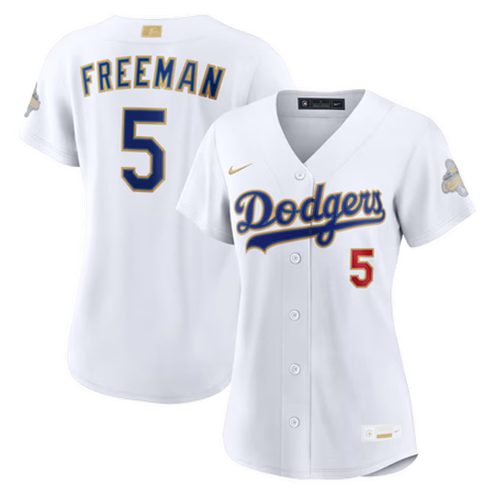 Women's Los Angeles Dodgers #5 Freddie Freeman Nike White 2026 Gold Collection Stadium Jersey