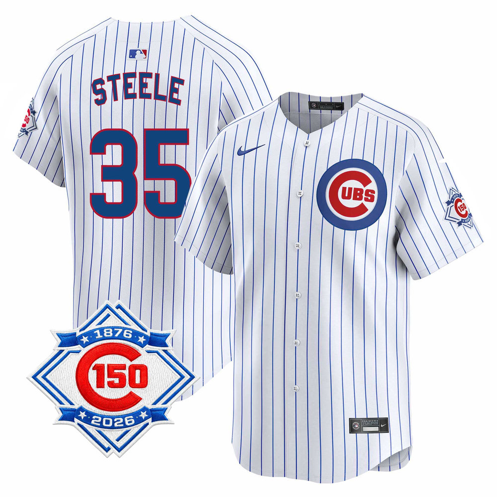 Men's Chicago Cubs #35 Justin Steele White Nike Home Vapor Limited 150th Anniversary Authentic Lettering Jersey