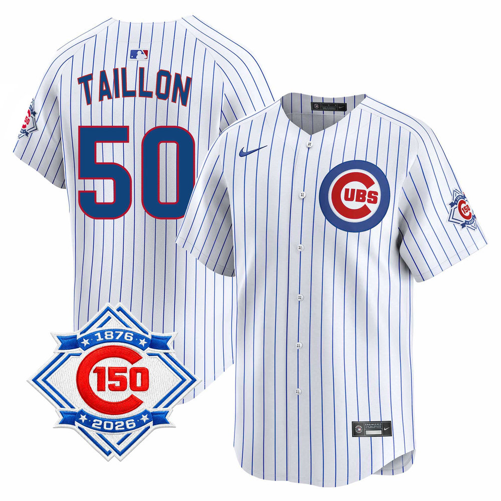 Youth Chicago Cubs #50 Jameson Taillon White Nike Home Vapor Limited 150th Anniversary Authentic Lettering Jersey