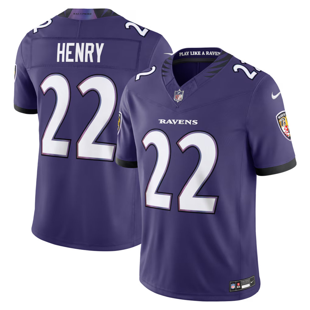 Youth Baltimore Ravens #22 Derrick Henry Nike Purple Vapor F.U.S.E. Sewn Down Limited Jersey